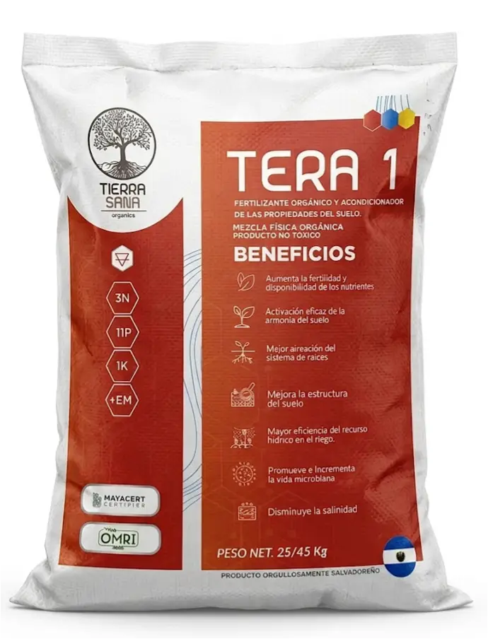 Nuestra línea TERA, optimiza la estructura del suelo y el desarrollo radicular mediante altos niveles de fósforo, calcio y materia orgánica. Estos fertilizantes sólidos garantizan una nutrición base eficiente que mejora la fertilidad biológica, la resistencia al estrés y la calidad postcosecha del fruto